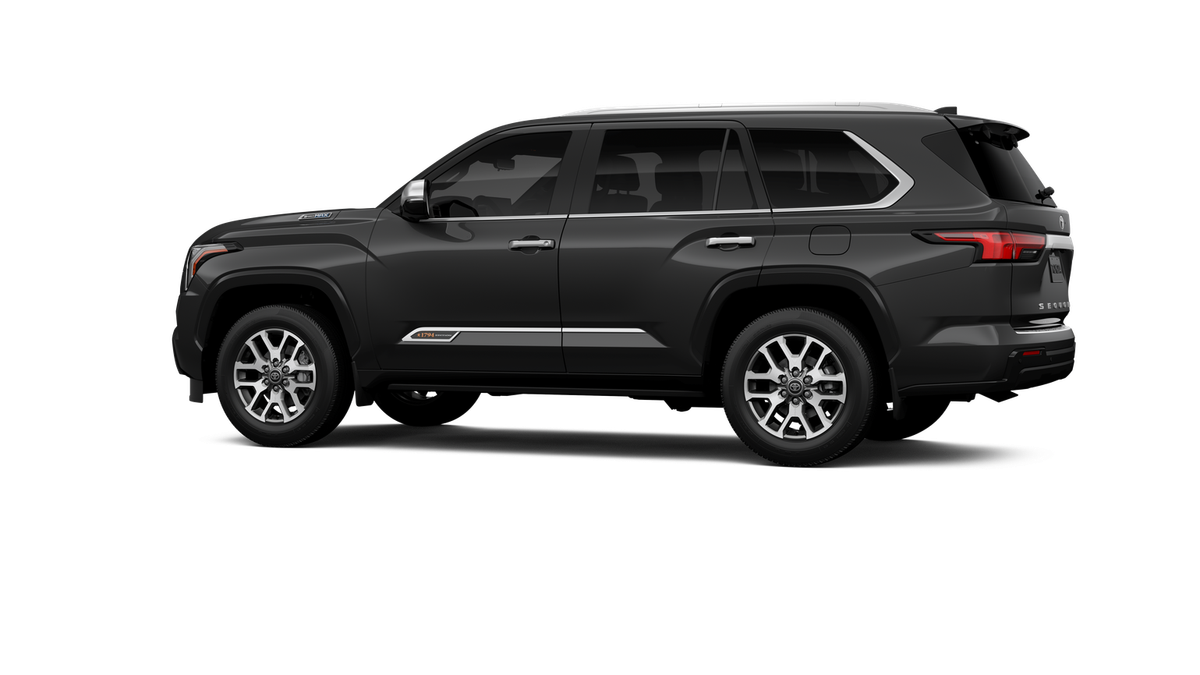 • Bright-chrome "SEQUOIA" rear door badge, chrome "1794 EDITION" door badge and garnish, door handles, window molding and mirror caps; color-keyed tailgate spoiler; black-painted overfenders