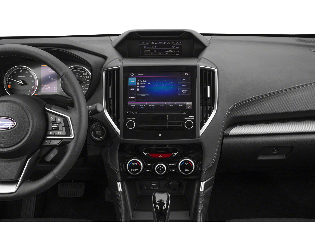- Radio: Subaru Starlink 8.0" Multimedia Plus System -inc: AM/FM stereo HD Radio w/single-disc CD player w/MP3/WMA/CRR/RW file capability, multi-touch gesture high resolution display, 8.0" LCD screen, voice activated controls, Bluetooth® audio streaming connectivity, hands-free phone connectivity and hands-free SMS text messaging connectivity, Near Field Communication (NFC), iPod control capability, rear-vision camera display, SiriusXM All Access radio and Travel Link (subscription required), smartphone integration: AHA, Android Auto, CarPlay and Pandora, Starlink cloud applications: refer to subaru.com for app availability, 6 speakers, dual USB input ports, 3.5mm auxiliary input jack and body color roof mounted antenna