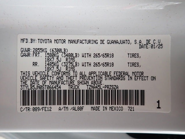 - Vehicle Name: Toyota Tacoma 4WD